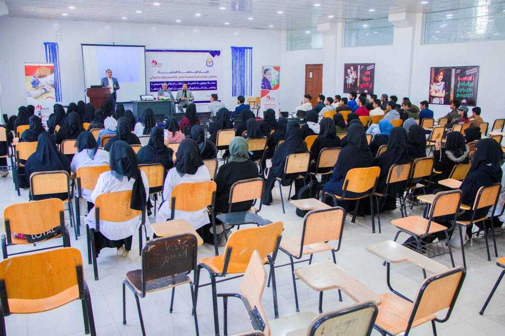 The Yemeni University, in coordination and cooperation with the Yemeni Society for Thalassemia and Hereditary Blood Disorders, held today, Tuesday, 5 Rajab 1445 AH, corresponding to January 16, 2024, an awareness campaign to highlight the risks, complications, and prevention methods of thalassemia and hereditary hemolytic anemia. The campaign emphasized the importance of supporting efforts to protect children from these chronic genetic diseases, stressing that early screening and medical consultation before marriage are the only ways to prevent them.