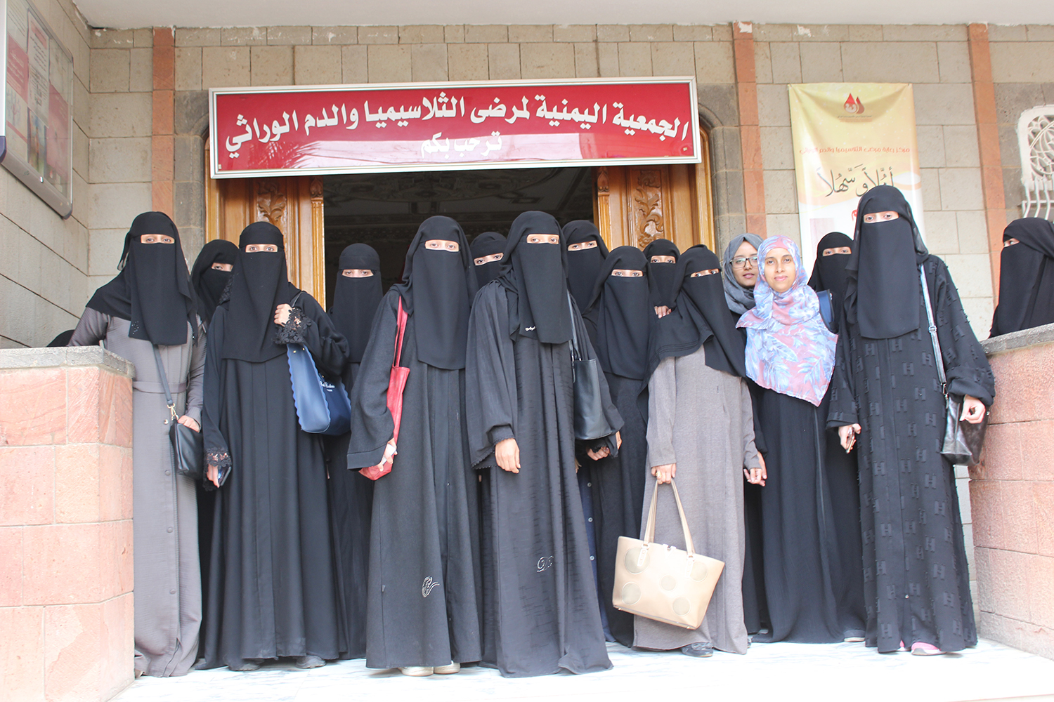 On Wednesday, February 27, 2019, a group of female students from the Laboratory Department at the Faculty of Medical Sciences visited the headquarters of the Yemeni Society for Thalassemia and Hereditary Blood Disorders. During the visit, they were introduced to the activities of the Thalassemia and Hereditary Blood Disorders Care Center, its facilities, and the services provided to children with thalassemia.