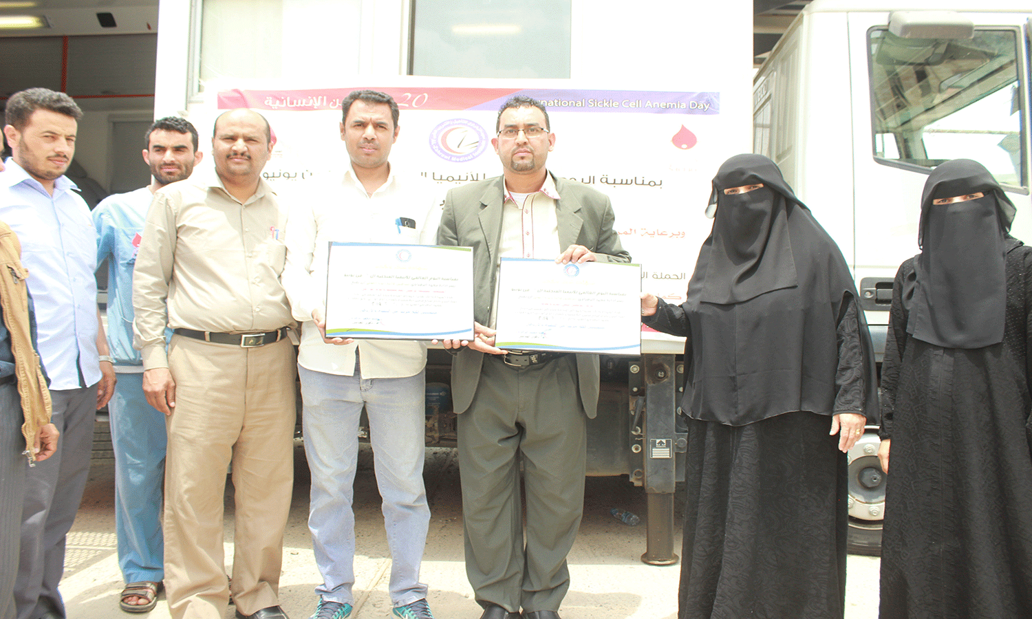 On June 27, 2019, and coinciding with World Sickle Cell Anemia Day on June 19, under the slogan “Blood Donation is a Life Saver,” and sponsored by the National Blood Transfusion and Research Center, the Yemeni Society for Thalassemia and Hereditary Blood Disorders, in cooperation with Al-Zahrawi Institute for Medical Training and Rehabilitation, launched a blood donation campaign in support of patients with thalassemia and hereditary blood disorders. The campaign received a strong turnout from generous donors.
