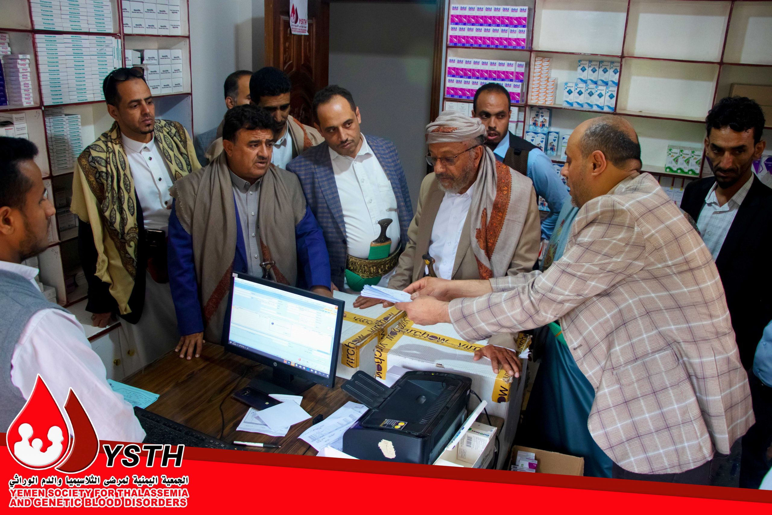 On Saturday, 9 Shawwal 1444 AH / corresponding to April 29, 2023, a delegation comprising Mr. Hamoud Al-Naqeeb, Undersecretary of the Social Affairs and Labor Sector at the Capital Secretariat; Mr. Hassan Al-Qadi, Assistant Undersecretary of the Secretariat; Mr. Nasser Al-Kahali, Director General of the Office of Social Affairs and Labor; Mr. Nabil Rajeh, Director General of the Department of Organizations and Associations at the Secretariat; and Mr. Mohammed Hizam Abu Arij, Director General of Social Care Centers and Institutions, paid an inspection visit to the Therapeutic Center for Thalassemia and Hereditary Blood Disorder Patients.