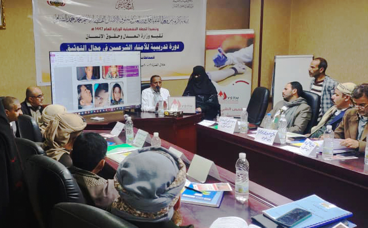 The Yemen Society for Thalassemia & Genetic Blood Disorders participated on Saturday, 15 Jumada Al-Akhirah 1447 AH, corresponding to December 6, 2025, in an awareness lecture dedicated to legal marriage registrars, as part of joint efforts with the Ministry of Justice to promote awareness about the importance of premarital screening and its role in reducing the spread of hereditary blood disorders.